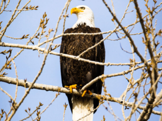 A majestic Bald Eagle perched in a tree surveying it’s domain and looking for it’s next meal.