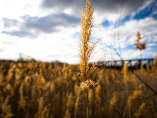 While visiting the wetlands near a local river I noticed a single reed standing apart from the other reeds near it.